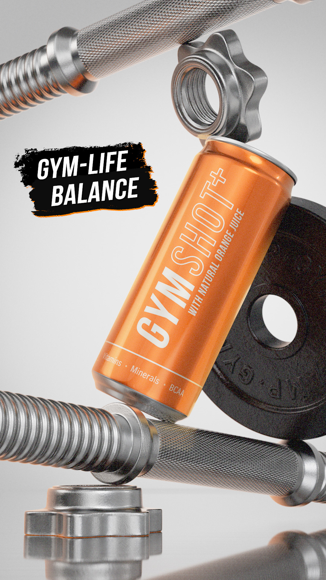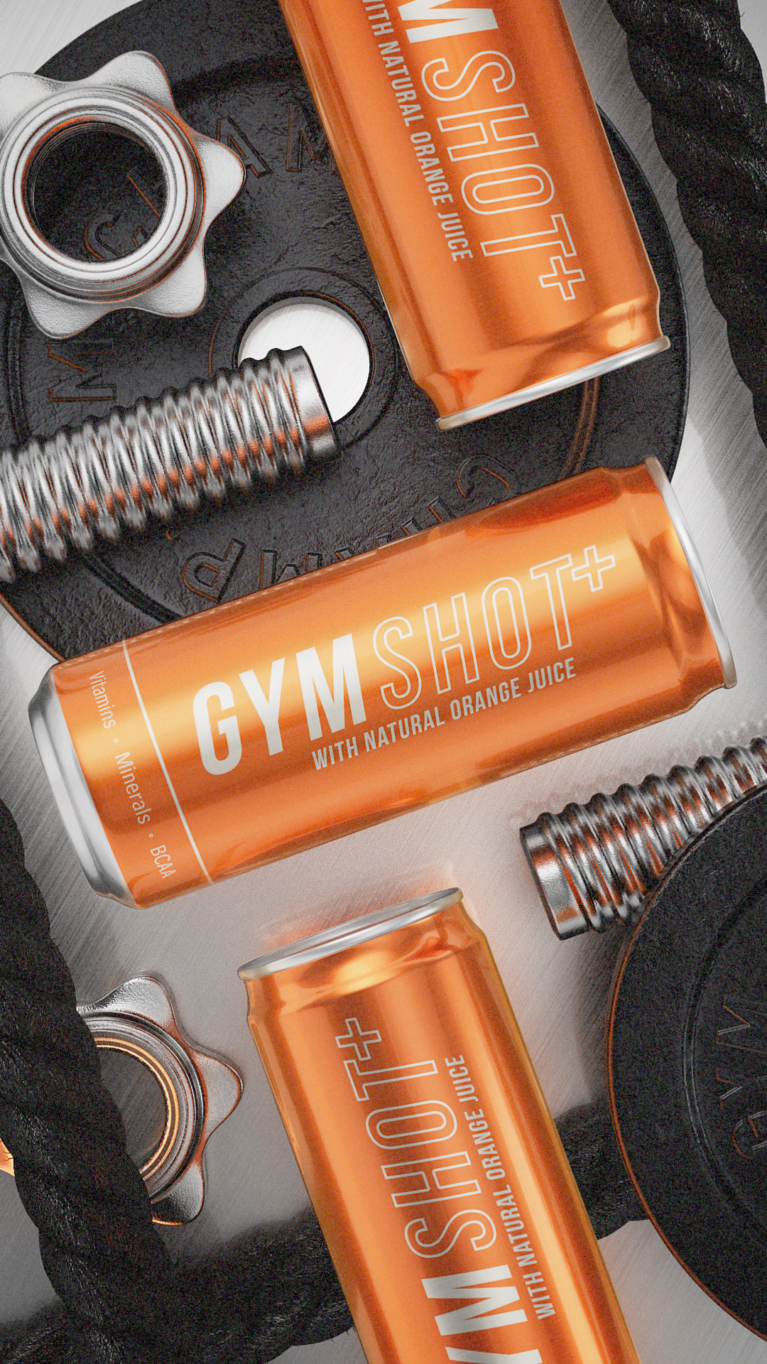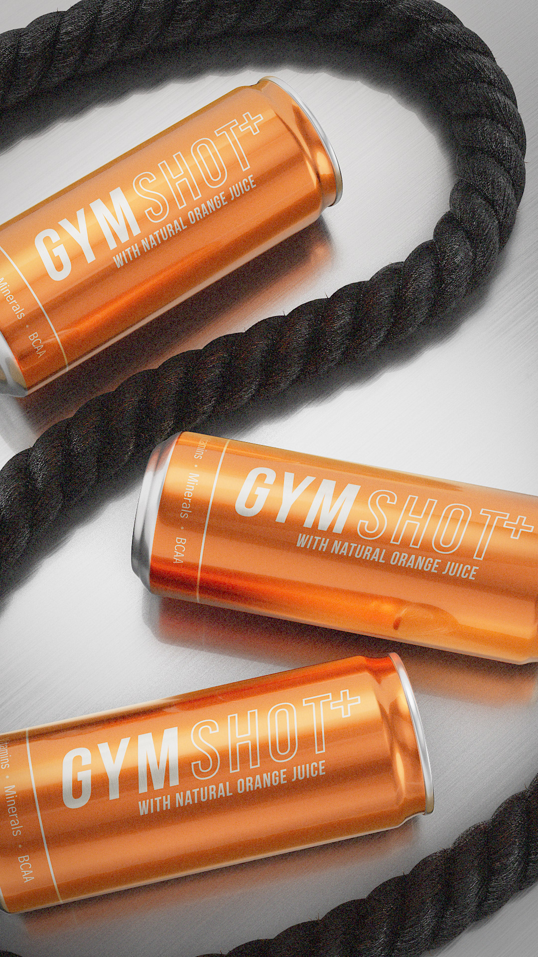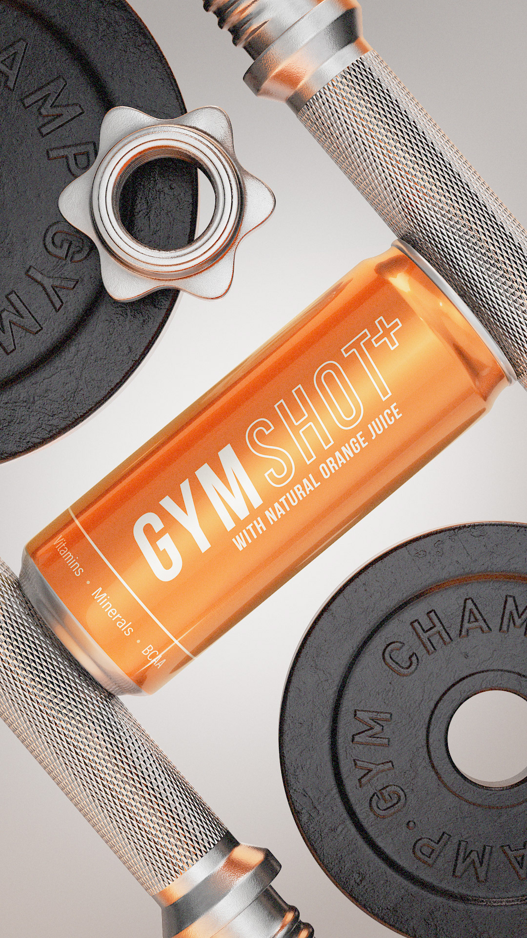 This is a full 3D package for the Gym Shot, post-workout drink product launch.